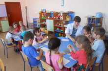 Бу атнада бакчабызда "Хуш, ямьле яз!" исеме астында эшчәнлекләр бара. Бүген зурлар төркеме балалары белән тәрбияче Шамсутдинова Лениза Мисбаховна иҗади-сәнгать үсеше буенча гади булмаган ысуллар белән эшләүне дәвам итеп, мамык диск ярдәмендә язгы күк йөзен ясап, табигать күренешләрен ясатты. Балалар эшчәнлектә иҗадилыкларын үстерделәр.