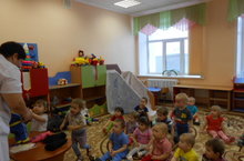 Бүген ясле төркеме балаларына курчак “Алия” кунакка килде. Ул балаларга килгәндә бер бияләе тошеп калуын, кулы туңуын әйтте. Балалар тәрбияче апалары Алсу Габделхәмитовна белән“Алиянең” кулын җылытыр өчен бармак уены уйнадылар.”Парын тап!” дидактик уенын уйнаганда зур һәм кечкенә сүзләрен, төсләрне кабатладылар.