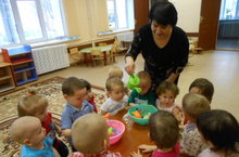 Бүген иң кечкенәләр төркемендә тәрбияче Богавеева Гүзәлия Шамиловна балаларны су һәм аның үзенчәлекләре белән таныштырды. Нәниләр суда балык, үрдәк уенчыкларын йөздерделәр. Су ага, балык йөзә, үрдәк йөзә дигән җөмләләр төзергә өйрәнделәр.