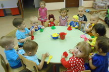 Бүген ясле төркеме балаларына кунакка Алсу курчак һәм Марат курчаклар килделәр. Алар балаларны савыт-саба белән таныштырдылар, аннары балалар белән бергәләшеп табын артында сыйландылар. Нәниләребез сөенделәр, курчаклар белән уйнадылар.