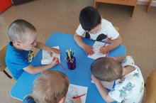 Сегодня в детском саду "День раскраски". Дети очень любят раскрашивать рисунки по образцу, по воображению. После завтрака, на прогулке дети были заняты раскрашиванием рисунков.