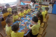 Бүген уртанчы төркеме балалары дымка бизәкләре кулланып уенчык үрдәк әвәләделәр. Башта Ләйсән Равилевна дымка бизәкләренең чыгышы белән таныштырды, үрнәк ясап күрсәтте. Балалар бик тырышып әвәләделәр.