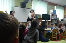 Атна темасы уңаеннан уртанчылар һәм зурлар төркеме балалары китапханәгә экскурсиягә бардылар. Балалар китапханәнең нәрсә икәнен, анда китапларның бик күп булуын белделәр.Китапханәчеләр Алия Мухаметнуровна һәм Флүзә Мисбаховна балаларрга бик кызыклы тәҗрибәләр күрсәттеләр. Соңыннан балалар белән берлектә китап ясадылар. Экскурсия балаларда зур тәэсирләр калдырды. Китапханәгә бару барысына да ошады.