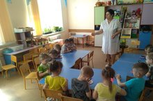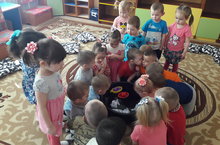 Бүген, 1 кечкенәләр төркемендә балалар предметларның үзенчәлекле яклары белән таныштылар. Суда нәрсә бата, нәрсә калкып чыга икәнен белделәр. Төрле предметлар: кәгазь көймә, уенчык пароход йөздереп карадылар. суга таш салып, аның төпкә киткәнен күреп, авыр предметларның суд батуына тәшенделәр.