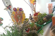 Кызыклы һәм файдалы эшне дәвам итеп уртанчылар төркеме балалары тәрәзә төбендә нәни бакча булдырырга уйладылар:савытларга суган,укроп ,помидор карбыз һәм төрле чәчәк орлыклары чәчтеләр . Алар күзәтүләр аша үсемлекләрне үстереп җиткерербез дип уйлыйлар.