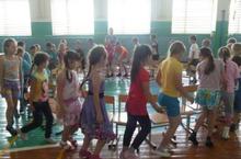 Мәктәп яны лагере үз эшен дәвам итә. Бүгенге көн "Җырлыйк әле" музыкалҗ бәйгесе җыр-моң белән башланып китте. Уен ике төркем арасында барды. Малайлар һәм кызлар бик теләп көч сынаштылар. Бер төркем җырлаганнан соң, икенче төркем җыр нинди хәрефкә беткән, шул хәреф белән дәвам итәргә тиеш иде. Уен ике команданың тигез җиңүе белән тәмамлады.