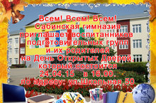 Всем! Всем! Всем! Сабинская гимназия приглашает воспитанников подготовительных групп и их родителей на День Открытых Дверей, который состоится 24.04.15 в 16.00. по адресу: ул.Школьная,50
