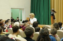 В актовом зале детей встретили учащиеся начальной школы и учителя. Ребята показали и рассказали на сцене номера художественной самодеятельности, как интересно живут дети в гимназии - не только учатся, но и поют, танцуют, читают стихи, выполняют акробатические номера. А в конце праздника заместитель директора по учебной работе гимназии Мубаракшина Лейля Масгутовна рассказала как организован учебный процесс в начальной школе и каковы его особенности.