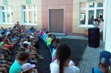 Сегодня в лагере день прошел очень интересно. Несмотря на дождливый день, было весело. Почему? Потому что к нам в гости пришли сегодня работники районного дома культуры с театрализованным представлением «Балачак – ул көмеш кыңгырау чыңы». Детство – это беззаботная пора, полная веселья, игр, праздников, задоров. На данном представлении были не только артисты, но и различные игры с подарками. Детство не всегда проходит весело. Бывают тяжелые и опасные моменты в жизни детей, неосторожность. Чтоб этих моментов было мало, наши артисты рассказали, так же и о технике безопасности с огнем, электробезопасности. Как нужно вести себя при пожаре, на дорогах и с незнакомыми людьми. Представление лагерю очень понравилось, все остались довольными.