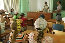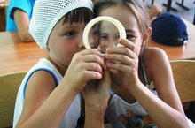 А после нас ожидали научные опыты. Разделившись на группы, ребята смогли посетить компьютерный класс и кабинет физики, где проходили опыты. Учитель физики Римат Мударисович не только рассказал, но показал ребятам на практике как действует атмосферное давление, ознакомил с лупой (увеличительным стеклом), звуковые колебания через резонансные коробки. Оказывается, и без дождя и воды мы можем увидеть радугу. Как вы спросите? Через обыкновенную призму, по-другому через стекло. А учитель информатики Ильсина Фанилевна показала программу, через которую развивается мышление, умение и навыки. Рассказала как правильно пользоваться компьютерами, ну и конечно же разрешила поиграть в развивающие игры.