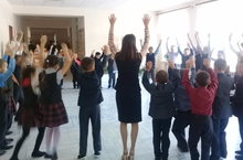 Утренняя зарядка начальных классов 14.09.2017 Каждое утро в нашей школе начинается с веселой зарядки. Учащиеся начальных классов с классными руководителями под ритмичную музыку начинают свой день.