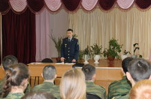 Встреча с представителем УФСИН 08.12.2016 8 декабря в школе состоялась встреча с полковником УФСИН Пестречинского района Ильсуром Халиловичем. Была проведена профориентационная беседа с кадетами 8-11 классов. Был объяснен механизм поступления в ВУЗы УФСИН, перспективы и возможности.Также кадеты просмотрели видеоролики о Пермском высшем учебном заведении.