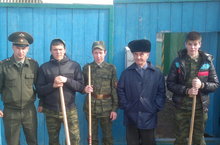 Учащиеся 11"А" класса вместе с воспитателем Исламовым Д.М. посетили ветерана войны Якупова К.Ю.. Ребята убрали территорию дома и помогли по хозяйсту.