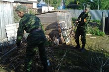 Учащиеся 8 "А" класса вместе с воспитателем Ганиевым Ф.Р. помогли учителю-пенсионеру Улюшевой Н.Г. по хозяйству.