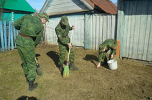 Залялутдинов Ильяс из 9б класса помог ветерану тыла Родионовой Н.М. по хозяйству, раскидал снег перед домом, прокопал канал для стока воды.