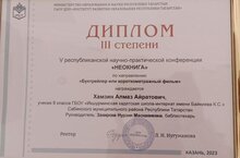 Поздравляем Хамзина Алмаза , призера Республиканской научно- практической конференции "Неокнига". Рук.:Закирова Н М.