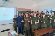 Сегодня, 14 октября, кадеты приняли участие во Всероссийском проекте «Классные встречи» Российского движения школьников. Гостем стал певец Ханиф Тимербаев. «Классная встреча» прошла в форме открытого диалога, где кадеты смогли напрямую задать интересующие вопросу гостю. Участие в мероприятии приняли 10 и 11 классы. Ребята задавали вопросы о профессиональной деятельности, предпочтениях в литературе, искусстве, интересовались историями из школьной жизни.