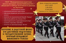 Желающие поступить в кадетскую школу приглашаются на собеседование по математике и русскому языку. Набор с 5 класса. Список документов для поступления находится во вкладке "Прием в школу".