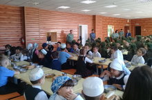 Сегодня в школе для учащихся прошел обед, посвященный празднику Курбан байрам.Перед обедом перед детьми выступил хэзрэт Рафик Исхаков.