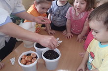 На день рождения Даши, дети ясельной группы испекли оладушки.