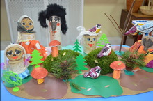 У нас идёт неделя «Лес в жизни человека и животных». На занятии по конструированию, с детьми садовской группы мы придумали и сделали коллективную композицию «Лесная поляна».