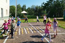 Воспитатели старшей группы провели целевую прогулку к пешеходному переходу. Цель - обучение детей правилам дорожного движения.