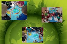 22 апреля - Международный день Земли - праздник чистой Воды, Земли и Воздуха. День напоминания о страшных экологических катастрофах, день когда каждый человек может задуматься над тем, что он может сделать в решении экологических проблем, поборов равнодушие в себе. Вот и дети младшей разновозрастной группы отметили этой праздник по-своему. Они сделали большой плакат нашей огромной Земли
