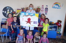 Воспитанники старшей разновозрастной группы после беседы с детьми о войне и о солдатах, отдавших за нашу Родину жизни, сделали плакат ко Дню Победы.