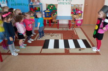 В гостях у ребят были Незнайка и Регулировщик, которые помогали ребятам вспомнить правила поведения на дороге. Ребятам было очень весело: они исполняли песни, играли в музыкальные игры по теме мероприятия. В играх дети побывали и пешеходами, и пассажирами, и шофёрами. По окончании нашего мероприятия были устроены гонки автомобилистов, где победила дружба. -