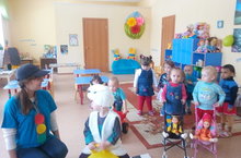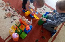 Малыши с целью закрепления знания о профессии "Шофер", "Врач", "Парикмахер" соревновались, разделившись на команды. Каждая команда была и шоферами, и врачами, и парикмахерами. В заключение все они стали строителями и построили дом для своей команды. Победила дружба!