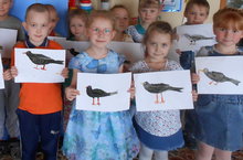 Сегодняшний день посвящался птицам. Воспитатели показали инсценировку «Птицы - наши друзья». В течение дня малыши играли подвижные, дидактические игры с участием «птиц», рисовали, лепили, раскрашивали их. Научились из мозаики собирать птенцов. Отгадывали загадки, учили стихи, песни, смотрели мультфильмы, слушали пение птиц. На прогулке наших крылатых друзей угостили «птичьим тортом». Итогом дня была аппликация «Скворечник».