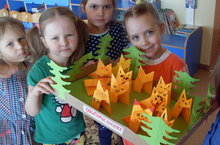 Здесь нечего особенно мудрить,А нужно просто взять листок бумагиИ постараться что-нибудь сложить.Вот они наши лисички! -