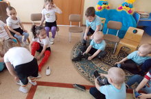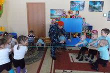А теперь зарядка. Но не простая, а на проверку силы -"Перетягивание каната!".