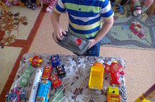 Цель: познакомить с основными видами транспорта: воздушным, водным, наземным; формировать умение дифференцировать транспорт по назначению: грузовой, пассажирский; различать основные части транспорта: кузов, кабина, колеса, руль и т. д учить делать из пластилинового шара диск (колесо), соединять концы палочки (цилиндра); воспитывать уважение к людям, наблюдательность, активность, самостоятельность.