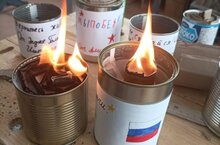 Окопные свечи изготавливаются из жестяной банки, в которую помещают скрученные полоски гофрокартона, затем его заливают парафином или воском. Длительность горения таких окопных свечей от 3,5 до 8 часов. Они используются солдатами для освещения, обогрева, приготовления пищи. Солдаты в зоне СВО испытывают острую нехватку в таких свечах. -
