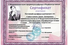 Учащиеся нашей школы также приняли участие во II Межрегиональной научно-практической конференции "Никифоровские чтения" в секции "Литературное творчество". Галиахметова Эндже, 3 кл. (рук. Галиахметова Г.Н.), Гайнутдинов Данис, 8 кл. (рук. Иванова Э.Х.) награждены Сертификатами участника. А Иванов Данияр, 6 кл. (рук. Галиахметова Г.Н.) награжден Дипломом III степени.