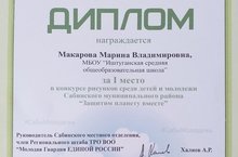 В целях повышения внимания детей и молодёжи к проблемам окружающей среды и охране природы прошёл конкурс рисунков «Защитим планету вместе!». Наши учащиеся и учителя приняли активное участие в данном конкурсе. Ученик 5 класса Иванов Никита (рук. Иванова С. В.), ученица 7 класса Назарова Кристина (рук. Николаева О. В.), ученица 11 класса Микаилова Эльвира (рук. Трофимова Г. Ю.) награждены Сертификатами участника, учитель русского языка Макарова М. В. награждена Дипломом за I место, учитель иностранного языка Трофимова Л. Т. – Дипломом за «Творческий подход».