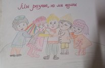 Рисунок "Мы разные, но мы едины", приуроченный к празднованию Дня России. Автор рисунка: ученица 2 класса Каримулллина Амира. -