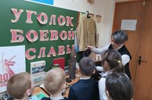 Руководитель музея Иванова Э. Х. познакомила ребят с экспозициями музея, рассказала подробно об "Уголке боевой славы", об экспозиции " Стена памяти", о предметах времён ВОВ. Ученики с интересом слушали экскурсовода, задавали свои вопросы. -