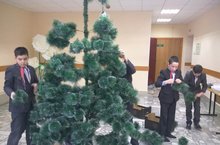 В школе идёт подготовка к Новогодним праздникам. Сегодня учащиеся школы поставили и украсили Ёлку.