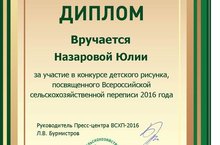 Поздравляем Назарову Юлию, которая приняла участие в конкурсе детского рисунка, посвященного Всероссийской сельскохозяйственной переписи 2016 года!Желаем дальнейших творческих успехов и неиссякаемого вдохновения!