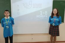 Участники «Движения Первых» Габдулова Иделия и Низамиев Рияз (в качестве волонтёров) помогали на площадке для проведения IX Всероссийской просветительской акции «Большой этнографический диктант».