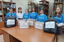 Участники "Движения Первых" сформировали гуманитарную помощь в коробки.