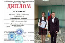 Ученица 7 класса Кузьмина Полина приняла активное участие в республиканской научно-практической конференции "Шаги в науку-2024" (рук. Иванова Эльмира Хуснулловна) Желаем ей дальнейших успехов!