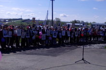 Бүген мәктәбебез укучылары һәм укучылары Бөек Җиңү көненә багышланган митингта катнашып, сугышта һәлак булганнар истәлегенә куелган һәйкәлгә чәчәкләр салдылар, венок куйдылар. Барлык укучылар һәм укытучылар да "Үлемсез полк" акциясендә катнашып, транспарантлар ясадылар.