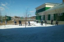 "Экояз - 2019" акциясе кысаларында мәктәп территориясендәге карларны тарату оештырылды.
