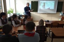Преподаватель ОБЖ Вафин А.В. провел урок Универсиады с просмотром презентаций и показом видеороликов. Ученики по группам выполняли задания по тетрадям. Узнали виды спорта, которые будут представлены на XXIX Всемирной зимней универсиаде 2019 году в Красноярске и правила, спортивные рекорды, истории легендарных спортсменов и заслуженных тренеров.