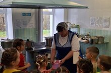 Воспитанники старшей группы поздравили поваров своего детского сада с праздником и подарили подарки.