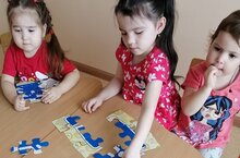 С целью закрепления и систематизирования представления детей о знаках дорожного движения, их назначении, в подборе подходящих по форме и цвету фрагментов рисунка дорожного знака и складывании их в целое изображение, развивать память, связную речь, логическое мышление, пространственную ориентировку, внимание, мелкую моторику рук в режимных моментах собираем пазл.