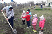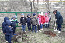 Әлеге акциягә кечкенәләр төркеменә йөрүче балалар белән тәрбияче апалар да кушылды. Алар бакчабыз территориясенә чия үсентеләрен утырттылар.